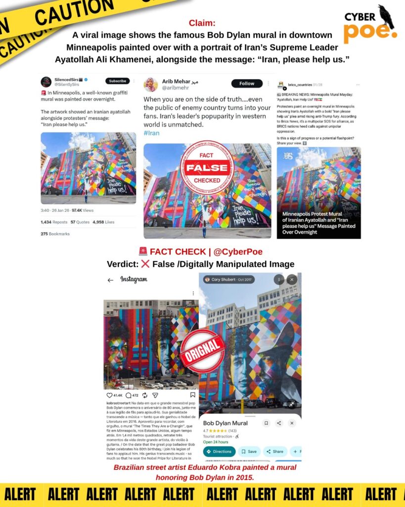Minneapolis Bob Dylan Mural Falsely Altered to Depict Iran’s Supreme Leader