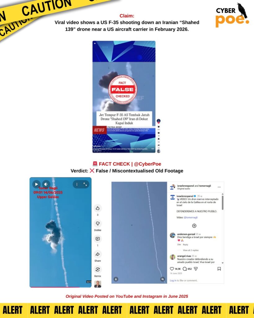 Viral Video Falsely Claims US F-35 Shot Down Iranian Drone Near Aircraft Carrier