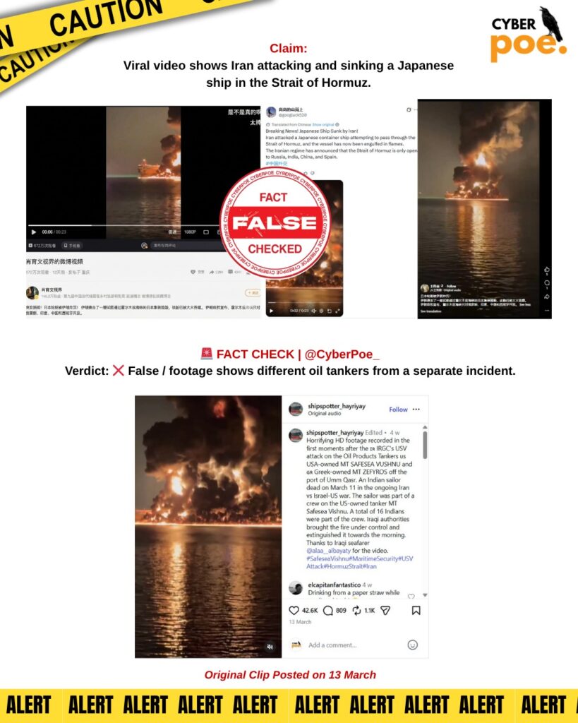 Oil Tanker Fire Video Misrepresented as Iranian Attack on Japanese Ship in Strait of Hormuz