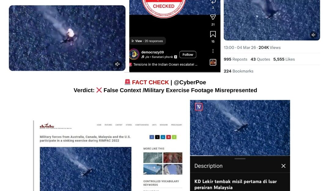 One widely shared post declared: “JUST IN: IRGC targeted a U.S. Navy destroyer in the Indian Ocean while it was refueling.” The claim quickly gained traction online, especially as tensions in the Middle East escalated following joint U.S. Israeli military operations against Iran. Reports of retaliatory missile and drone attacks across the region created an environment where dramatic war footage spread rapidly and was often accepted without verification.