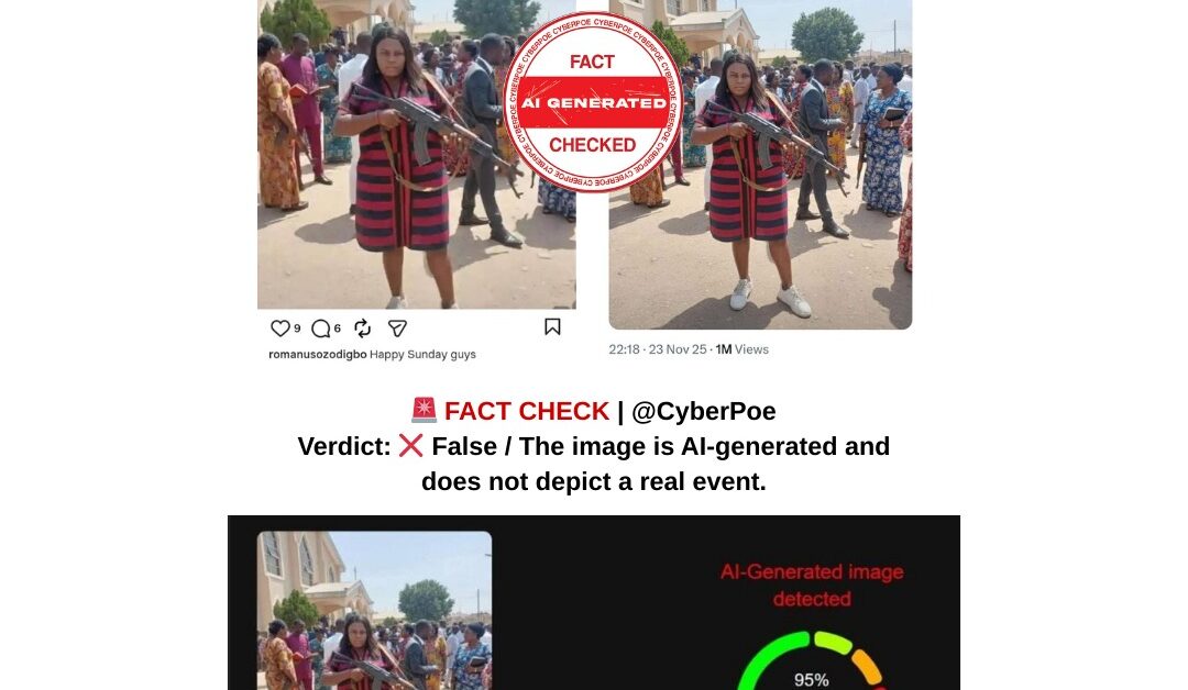 The viral image exploits real fear and suffering to construct a false narrative. By presenting a fabricated scene as reality, it distorts public understanding of Nigeria’s security situation and risks inflaming sectarian tensions. It also undermines legitimate reporting by blending fact and fiction in ways that are difficult to untangle once widely shared. AI-generated misinformation of this kind is particularly dangerous because it leverages emotional shock to bypass critical thinking, encouraging rapid sharing rather than verification.