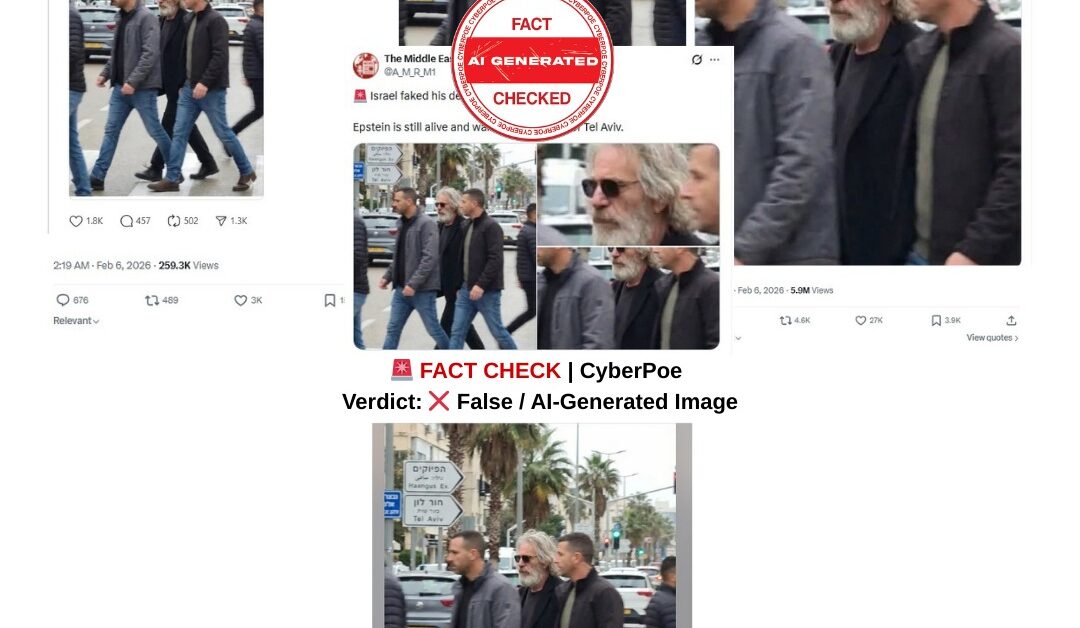 In early February 2026, a photograph began circulating rapidly across X,[1] Facebook,[2] Instagram,[3] and Threads,[4] reigniting one of the internet’s most persistent conspiracy theories: that Jeffrey Epstein is still alive. The image purported to show the disgraced financier walking freely on a street in Tel Aviv, Israel, appearing older, heavier, and sporting a beard and longer hair. Accompanying captions alleged that Epstein’s 2019 death had been staged, claiming Israel had secretly sheltered him while governments and courts knowingly covered up the truth.[5]