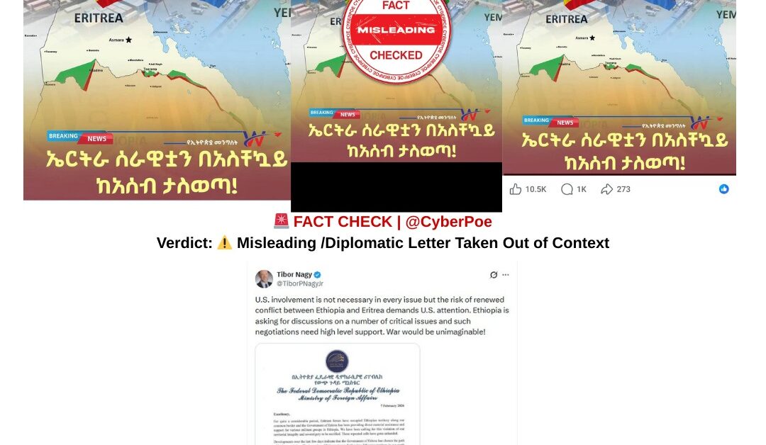 On February 8, 2026, Amharic-language posts began circulating widely on social media platforms including facebook[1], Instagram,[2] and X[3] claiming that Ethiopia had formally demanded Eritrea “immediately withdraw its troops from Assab port,” allegedly describing the Red Sea city as Ethiopian territory. The posts referenced a February 7 diplomatic letter in which Ethiopia accused Eritrea of a military incursion into its northeastern Tigray region. However, viral narratives suggested that Addis Ababa had gone further extending its demand to include Eritrean forces stationed in Assab and asserting ownership over the strategic port.