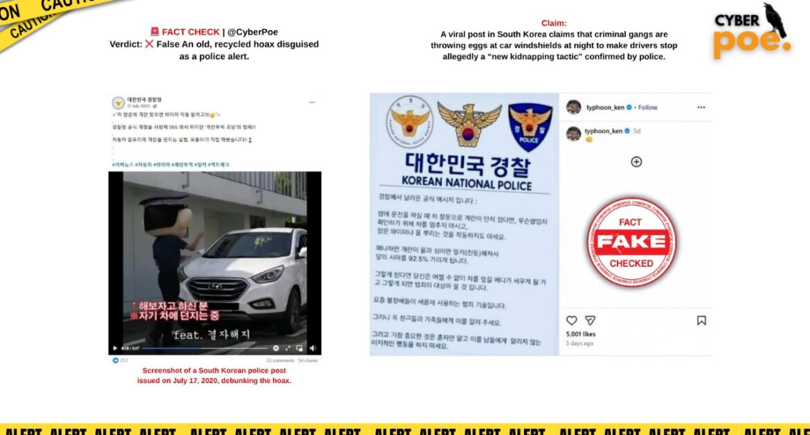 Fact Check by CyberPoe: Viral “Egg Attack” Kidnapping Warning in South Korea Is a Recycled Hoax