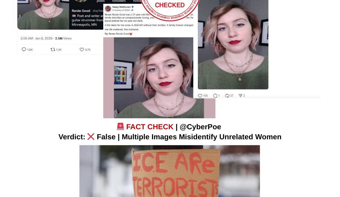 CyberPoe’s investigation confirms that multiple viral images circulated after the Minnesota ICE shooting do not depict Renee Nicole Good. Instead, they falsely show Gabriela Szczepankiewicz and Renee Paquette, both unrelated to the incident. The case highlights the dangers of unverified image sharing, particularly during moments of collective shock and anger. It serves as a reminder that real people often become collateral damage when online narratives prioritize speed and emotion over verification. Accurate reporting, careful source checking and restraint in sharing visuals remain essential to prevent further harm in such situations.