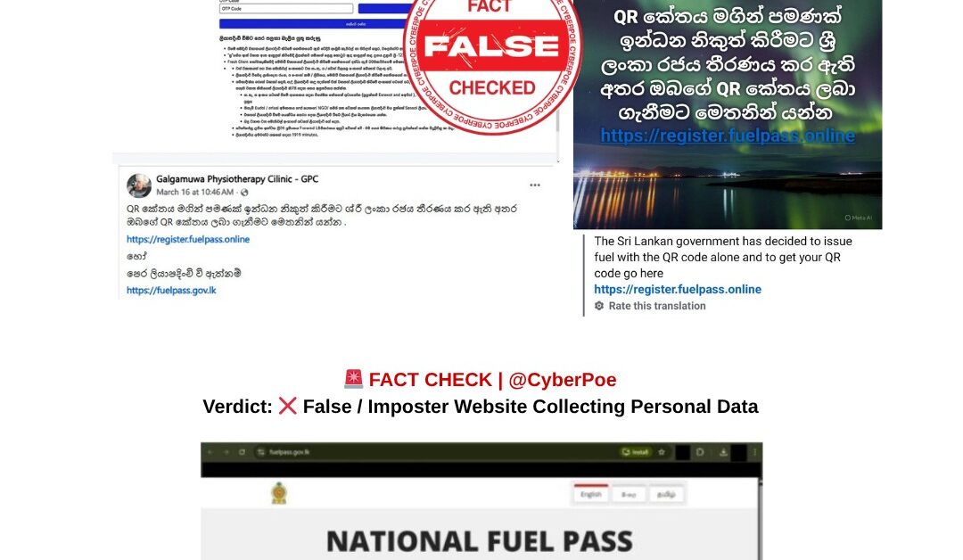 As Sri Lanka began preparing for potential fuel shortages amid global disruptions linked to the ongoing Middle East conflict, social media users started sharing posts urging citizens to register for a National Fuel Pass QR code through a specific website link. The posts,[1] circulating widely on platforms such as Facebook[2] and WhatsApp, claimed that the government had made the QR code mandatory for fuel purchases and directed users to a website that supposedly allowed them to register for the system.
