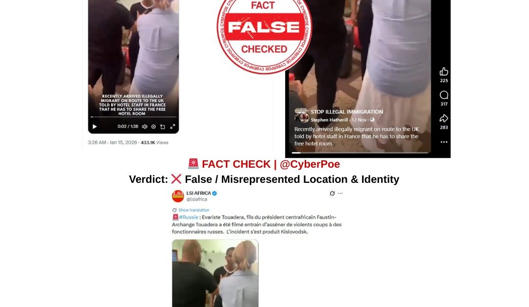 The misleading framing relies on a familiar tactic in digital misinformation: removing a video from its original time and place, then attaching it to a politically sensitive issue. The fact that the man is heard speaking French likely contributed to assumptions that the altercation occurred in France. However, French is an official language of the Central African Republic and is widely spoken among its citizens. The language alone does not establish geographic location.