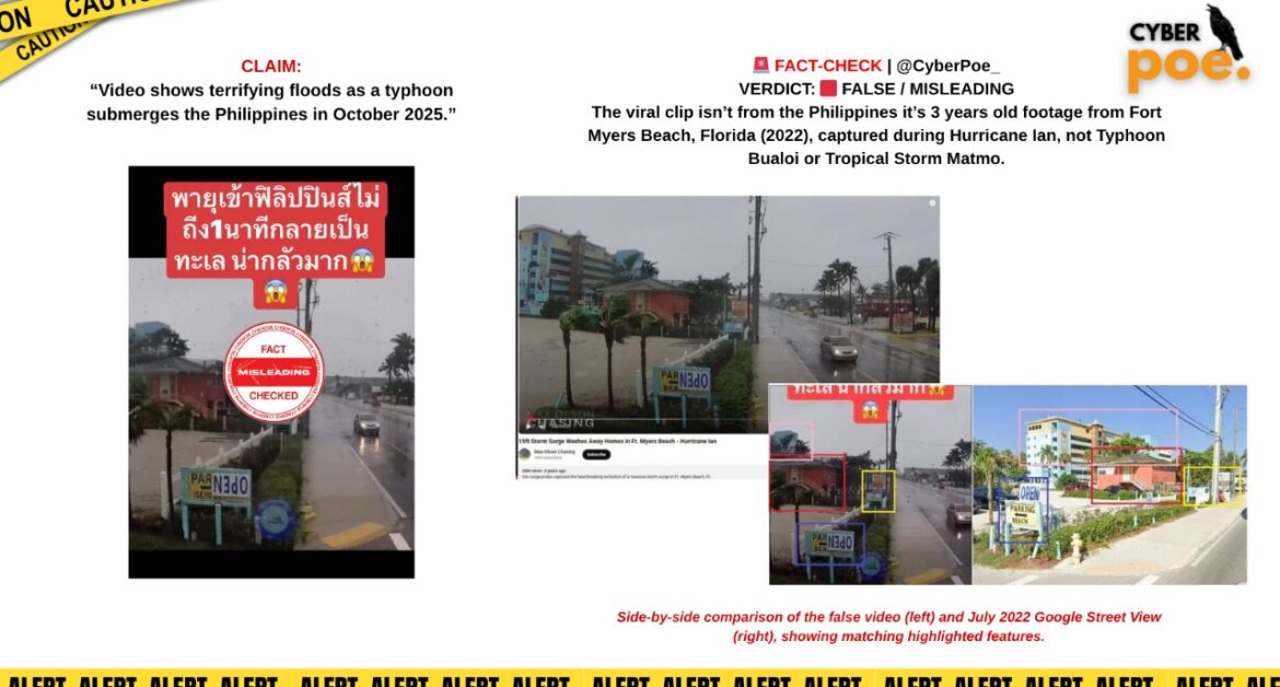 After a comprehensive forensic review, CyberPoe concludes that the viral video claimed to show flooding in the Philippines during Typhoon Bualoi is false. The footage was filmed in Fort Myers Beach, Florida, during Hurricane Ian in 2022 and has been repeatedly repurposed across multiple online misinformation campaigns.