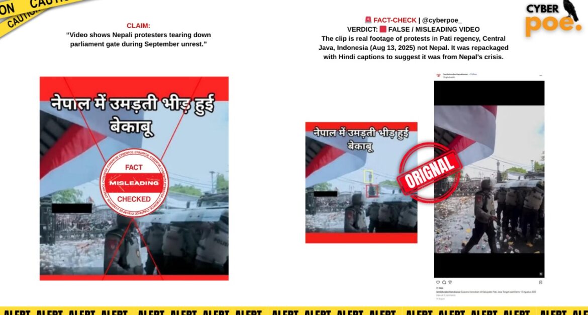 The viral gate-tearing video is not from Nepal, despite claims to the contrary. It was filmed in Pati Regency, Central Java, Indonesia, on August 13, 2025, during protests against a local tax policy. Its circulation as evidence of Nepal’s unrest is a textbook example of how misinformation exploits real crises by attaching unrelated but dramatic visuals. The lesson for audiences is straightforward yet essential: always examine details such as flags, language, architecture, and credible media reporting before accepting a viral video at face value.