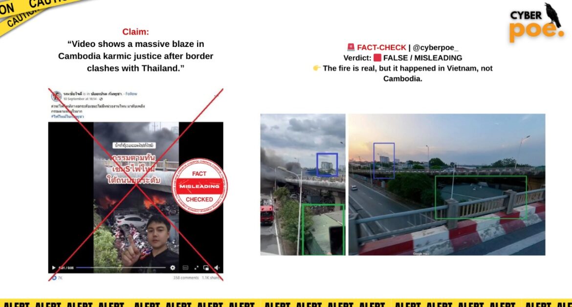 Misinformation thrives in times of crisis, particularly when regional rivalries and political tensions dominate the headlines. In late August 2025, a viral video spread rapidly across social media platforms, claiming to show a massive blaze in Cambodia. Partisan pages framed it as “karmic justice” for the deadly border clashes between Thailand and Cambodia earlier in July. The narrative quickly gained traction on TikTok, Facebook, and YouTube, feeding into pre-existing hostility between communities.
