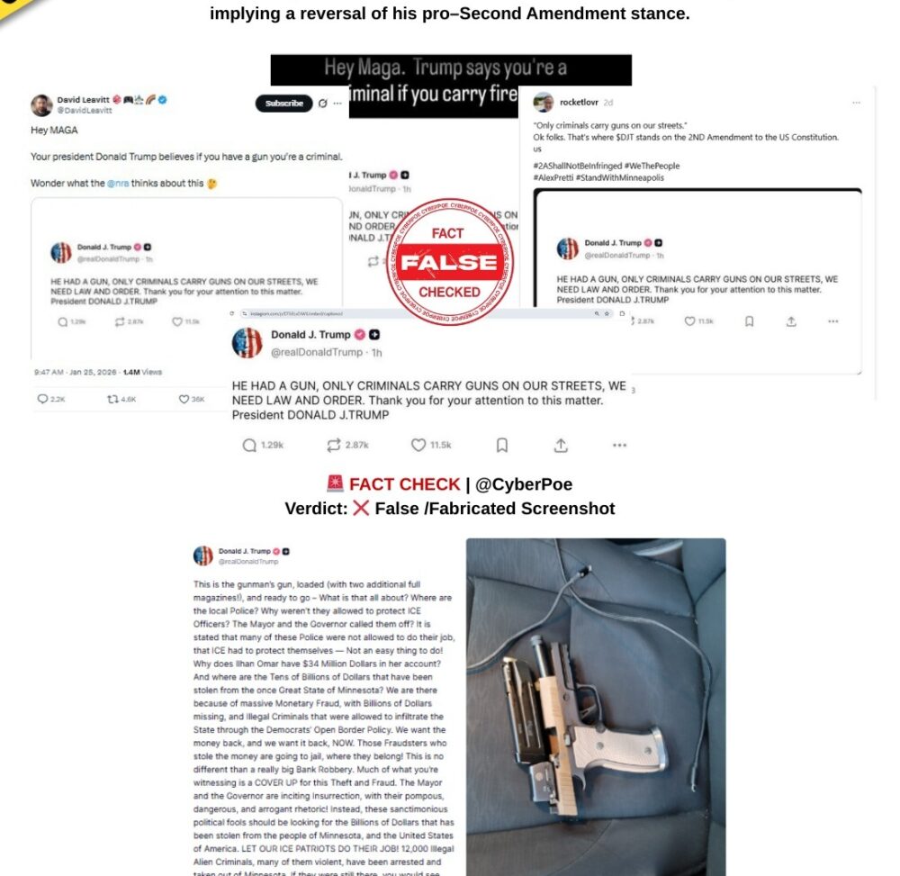 Fabricated Trump “Truth” on Guns Circulates After Minneapolis Protest Shooting