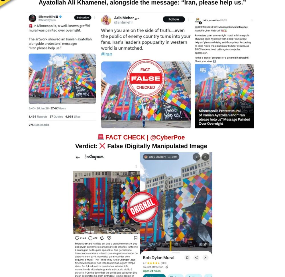 Minneapolis Bob Dylan Mural Falsely Altered to Depict Iran’s Supreme Leader